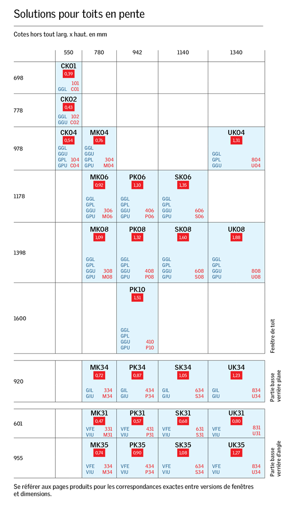 Seules ou en association, le choix des différentes tailles de fenêtres de toit VELUX permet d’optimiser la quantité de lumière et d’air frais en fonction de la dimension de la pièce.